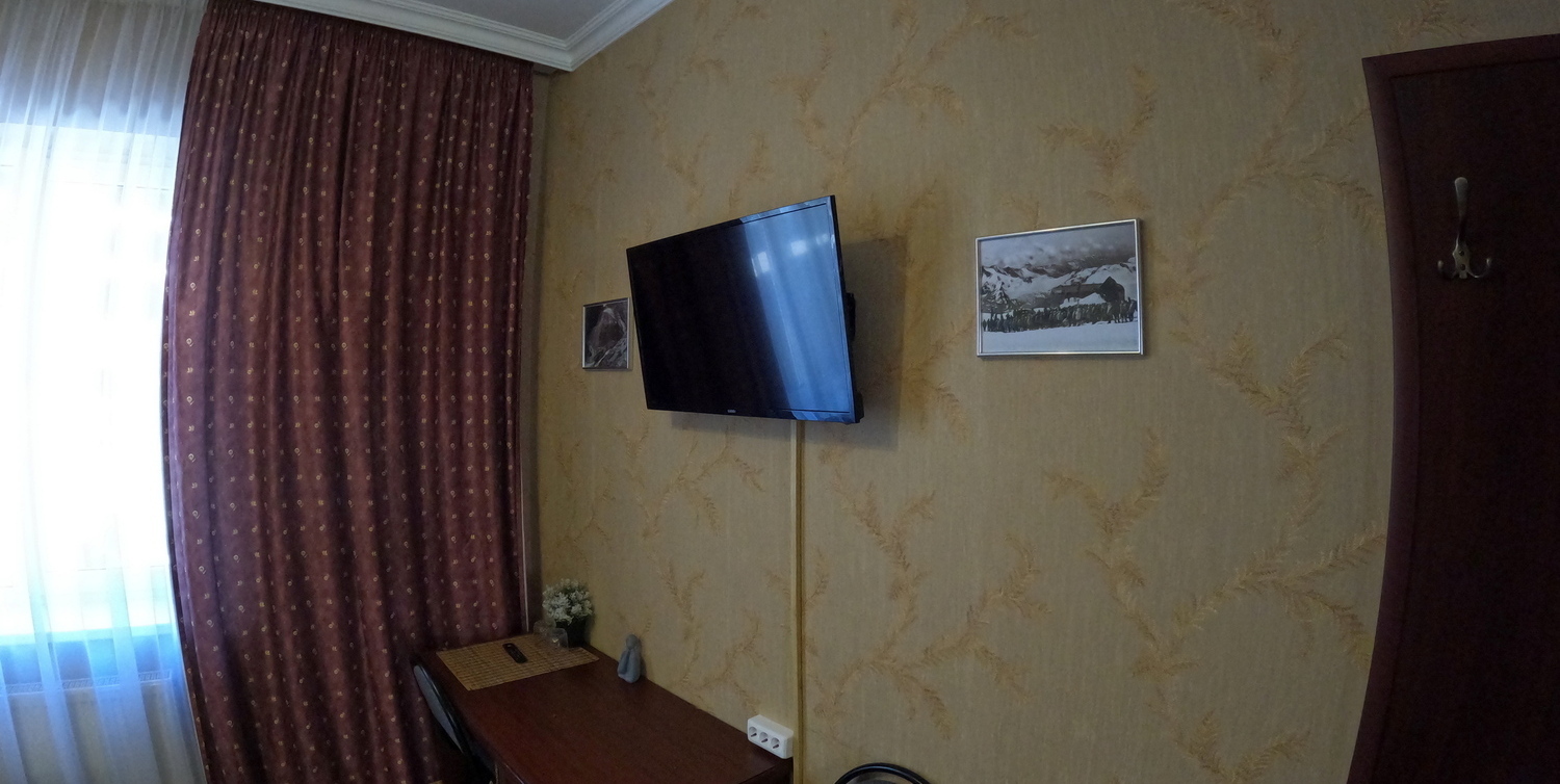 Кабельное TV, wi-fi, душ, платяной шкаф, журнальный столик, фен, зеркало,смена постельного белья,уборка номера по запросу.