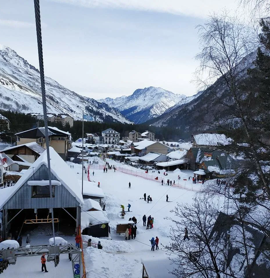 - Отель расположен на поляне Чегет, рядом с канатной дорогой.